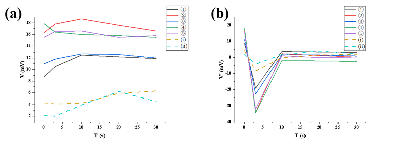 ① Voltage dropped rapidly the same way it was in the previous experiments.