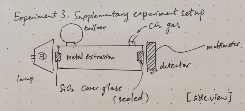 Gas is injected/dry ice is put in the chamber before experiments start. Data are recorded at t=0s, 3s, 15s and 30s after switching on the light. The rest of the procedure follows what's written in Experiment principles.