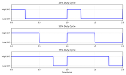 For rotation speed regulation of the DC motor, we implemented Pulse Width Modulation (PWM) via the microcontroller's programmable output. By adjusting the PWM duty cycle parameter (0-255), the effective input voltage to the motor is controlled through the modulation of high-level pulse duration. This relationship is mathematically expressed as:
