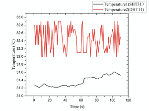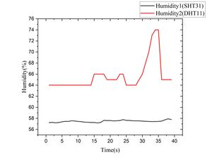 (2) Compare the Performance of DHT11 and SHT31 Sensors in Different Environments: By simultaneously using the DHT11 and SHT31 sensors, compare the temperature and humidity data measured in both indoor and outdoor environments. Analyze the differences in measurement accuracy, stability, and response time between the two sensors.