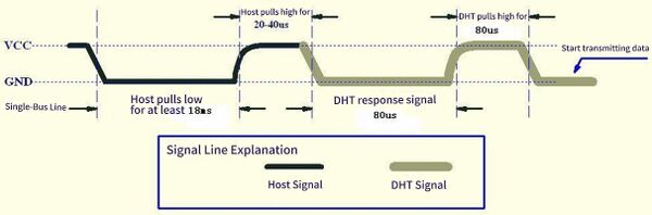 The DHT11 only performs temperature and humidity measurements once it receives a start signal from the host.