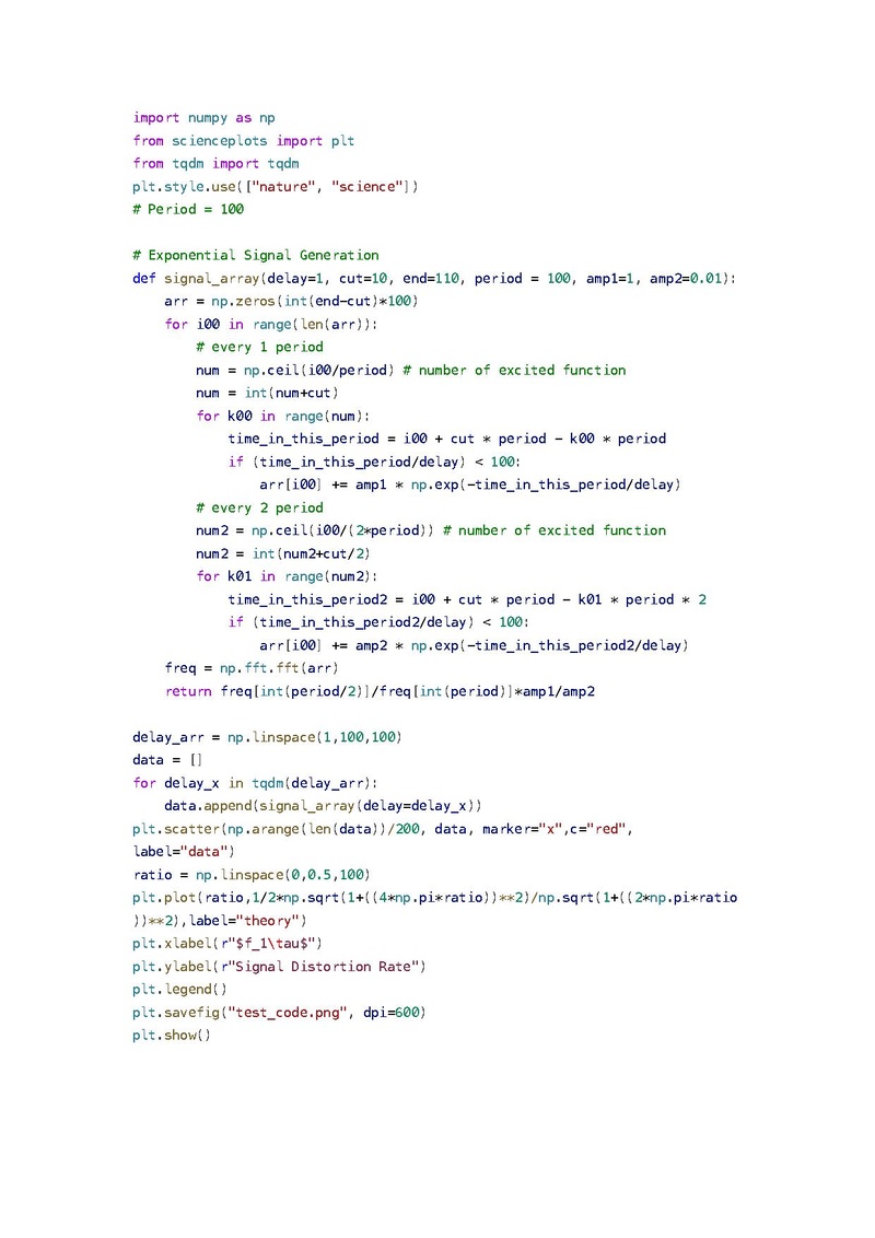 where we define as the signal distortion rate. This relation shows that when , the real value might be 2 times of the outputs, verified by our program. The distance between the theory and the data comes from the 2nd order Fourier component of , where .