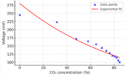 - The process was repeated for multiple concentration levels to establish the relationship between CO2 concentration and sensor voltage output.