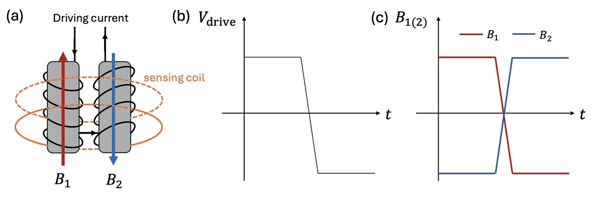 Let us go through the main features of a fluxgate. As shown in figure 1, it consists of two ferromagnetic coils which generate magnetic field in the opposite direction.