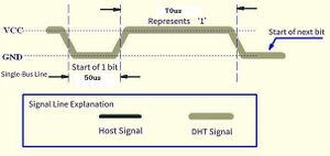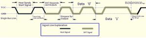 • A high level lasting 26–28 μs indicates a “0”