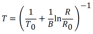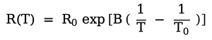 Where R0 is the resistance at a reference temperature T0 ,B is the material constant of the thermistor, T is the temperature of interest.
