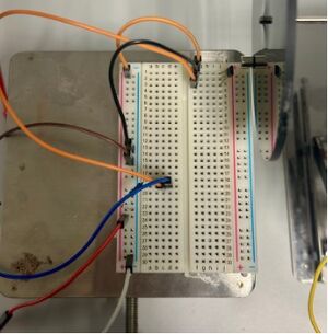 The breadboard connections were arranged according to the three-pin configuration of the Hall sensor and the requirements of signal measurement, as shown in Fig. 4. The supply terminal of the sensor was connected to the positive power rail, providing the operating voltage required for the Hall sensor. The ground terminal was connected to the ground rail, thereby establishing the common electrical reference for the circuit. The output terminal of the Hall sensor was then routed to a dedicated signal node on the breadboard. This same node was connected to the oscilloscope input so that the electrical response of the sensor could be observed directly during disk rotation.