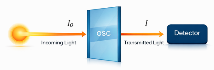 Where represents the original light intensity of the incident light, is the reflectivity, is the absorption coefficient, and is the thickness of the absorbing medium.
